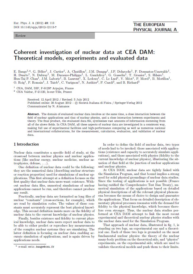 Dans le cadre du projet PRACE ( Partnership for advanced computing in Europe) de 25 millions d'heures de calcul, réalisé sur la machine Curie, des physiciens du Département physique théorique et appliquée (DIF/DPTA) en collaboration avec l'Université Libre de Bruxelles, ont montré la capacité d'une approche, fondée sur l'interaction de Gogny, à prédire, sur des bases microscopiques, les sections efficaces d'absorption ou d'émission gamma des noyaux. L'exploitation du grand volume de données généré avec cette approche, dite "QRPA" ( Quasi particule random phase approximation), permettra de produire une base de données exploitable pour toute la carte des noyaux. Les résultats sont publiés dans le journal Physical Review C.