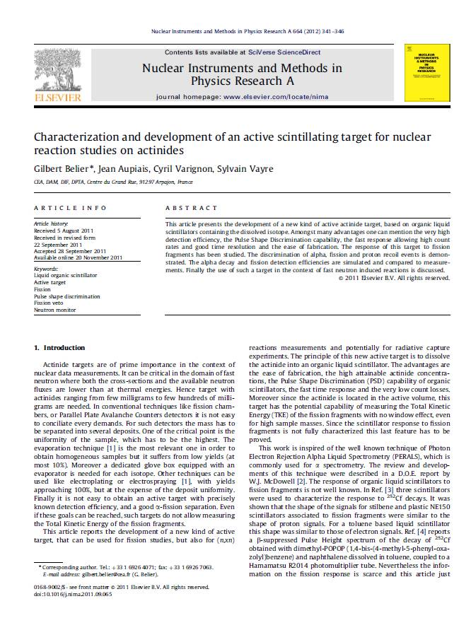 de production. Cette mesure a été réalisée par le Département de physique théorique et apliquée (DIF/DPTA) et le Département des matériaux alpha (VA/DMA), en collaboration avec les laboratoires