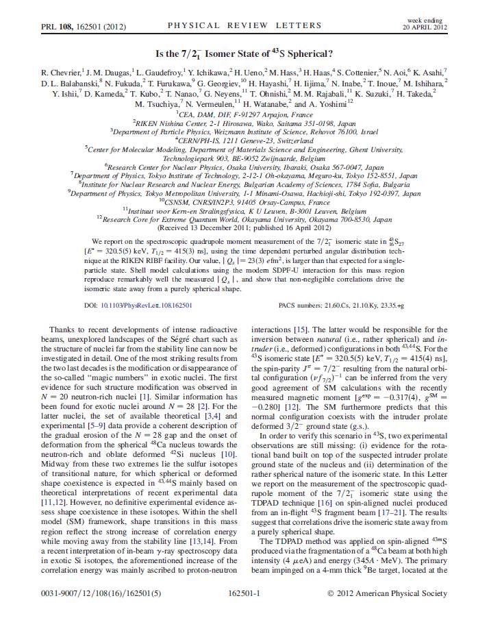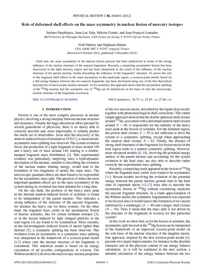 Ce travail a fait l'objet d'une publication dans la revue Physical Review C.