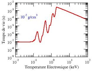 de vie entre 81 ns pour une température de 100 eV jusqu’à